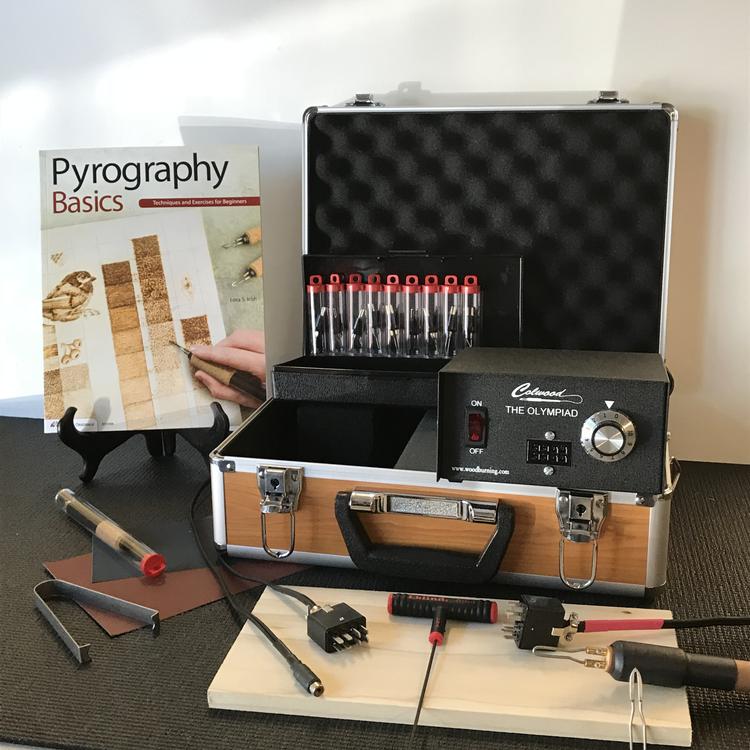 Description: The Olympiad Deluxe Woodburning Kit makes a great gift for the serious woodburning artist. Nine of the most popular tips are included in the kit along with accessories to perfect your burning! (CASE NOT INCLUDED) Kit Contents: 1 - Olympiad (120V) 1 - Tip Storage Case 1 - Hot Knife 1 - Hot Knife Detailing Tip Style 1 - Hot Knife Writing Tip Style 1 - Olympiad Ultra Flex Cord 1 - RT B Large Point 1 - RT C Writing 1 - RT D Small Round 1 - RT J Tight Round 1 - RT S Shading 1 - RT K � Small Point 1 - RT C1 Small Calligraphy 1 - RT MR Micro Rounded Heel 1 - RT MC MicroWriting 1 - RT Handle 1 - EZ Tip Puller 1 - Pyrography Basics (Instructional Book) 1 - Cleaning Cloth 1 - Honing Paper 1 - Kiln Dried Poplar |